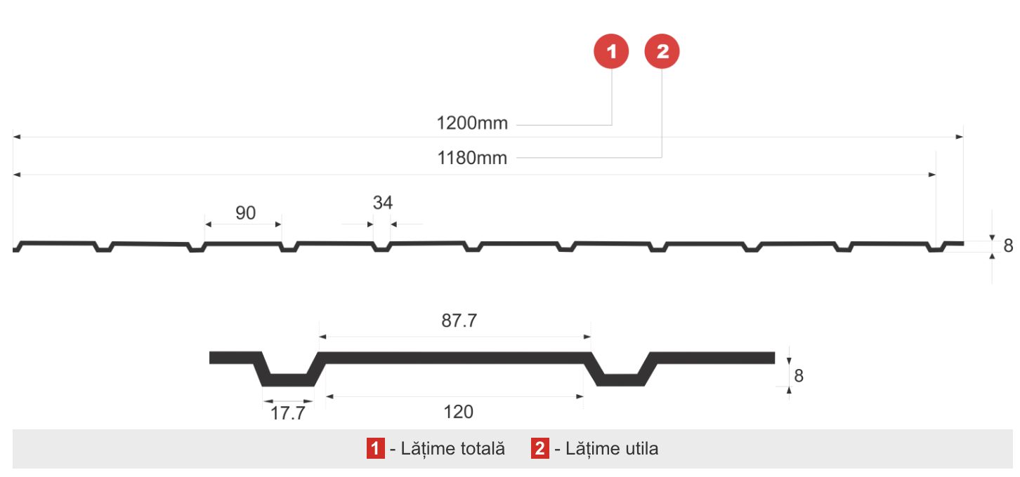 • Acoperire: poliester – 25 microni pentru tabla cu acoperire lucioasă/ 35 microni pentru tabla cu acoperire mat